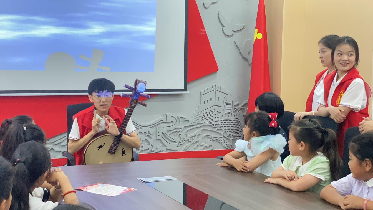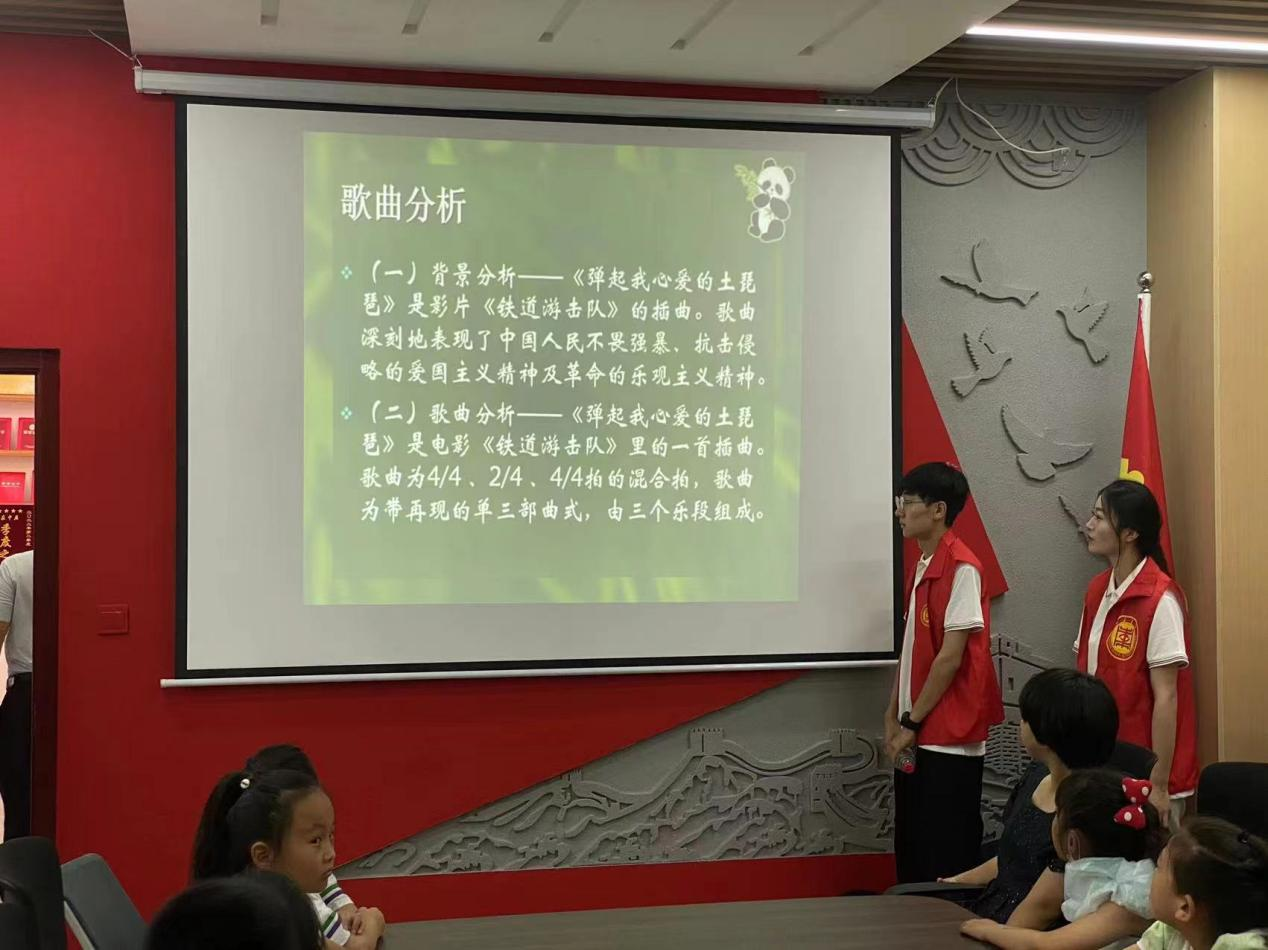 7月5日,“音为你”志愿服务队来到复兴社区,为社区内的小朋友们上了一堂公益音乐课,本次授课内容为教唱《弹起我心爱的土琵琶》,以铁道游击队的英雄故事引入,吸引学习兴趣,在歌曲教唱过程中,小朋友们认真学习歌曲,通过红色歌曲的学习以及志愿者的讲述,加深了对革命历史和红色故事的了解,在课堂中,志愿者们与小朋友充分互动,并进行了器乐演奏和舞蹈展示,激发了他们对于音乐与舞蹈的学习热情。课后,在社区负责同志的带领下,志愿者参观了复兴社区的党性教育基地,获益匪浅。